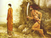 Angulimala corre sin parar y no puede alcanzar al Buda