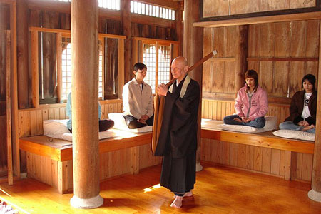 La transmisión del espíritu del Dharma comenzó, según la tradición, cuando en una ocasión el Buda estaba sentado en medio de una gran concurrencia de discípulos. Presentes estaban cientos de Bodhisattvas y Arahants, monjes y monjas, hermanos y hermanas legos así como varias órdenes de seres celestiales. Todos estaban en silencio esperando a que el Buda diese un discurso, pero esta vez en lugar de hablar el Maestro sencillamente levantó una flor dorada en medio del silencio de la asamblea. Sólo Mahakashyapa, uno de los discípulos de mayor edad conocido por sus austeridades, comprendió el significado de la acción del Buda y sutilmente sonrió. El Buda entonces dijo: "Soy el dueño del maravilloso ojo del Dharma que es el Nirvana, la Mente, el misterio de la Realidad y la no Realidad y la puerta a la Verdad Trascendental. Ahora se lo entrego a Mahakashyapa". En esto consistió la transmisión del espíritu del Dharma