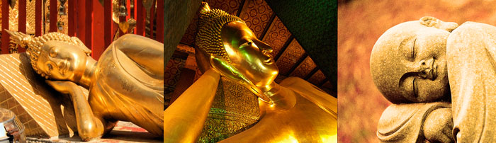 Bajo un árbol, como cuando nació y cuando logró la iluminación, el Buda alcanzó el parinirvana. En los sitios donde ocurrieron estos eventos se han colocado altares y son lugares de peregrinación. El altar del parinirvana se encuentra en Kushinagar. El Buda decidió morir en el que Ananda describió como un “triste pueblo de casuchas”, pero no fue una casualidad. Allí, entre árboles de sala, la gente de la localidad había construido un canapé de piedra para que los ancianos de la aldea se sentaran. Fue en éste donde el Buda se recostó y explicó qué arreglos quería para su funeral. Mientras tanto, Ananda se sintió invadido por una gran tristeza y se alejó para llorar a solas. Sin embargo, el Buda lo llamó y le dijo: “Es suficiente, Ananda. No te pongas así. Tarde o temprano tenemos que desprendernos de todo lo que más queremos. Durante mucho tiempo y de manera desinteresada has mostrado un gran cariño por mí, a través de tus acciones, tus palabras y tus pensamientos. Mantén viva tu práctica y alcanzarás la liberación de todos los obstáculos”. Entonces, frente a todos los monjes, el Buda ensalzó las virtudes de Ananda.