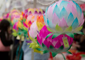 Sin importar de qué forma se celebre Wesak, los budistas se encuentran unidos por su propósito central, es decir, comparten la alegría de que ha surgido un buda en el mundo. Así, continúan una tradición que data de mucho tiempo atrás. Sólo tenemos que mirar los ejemplos de los grabados en piedra más antiguos de la India budista para damos cuenta de esta evidencia. Una muestra notable de esto es la composición que coloca al Buda, de forma simbólica, en un trono rodeado de monjes, monjas y personas laicas, todos con la manos unidas sobre la cabeza ofreciendo guirnaldas, fruta, pañuelos de seda y todo tipo de cosas. Lo que es realmente notable en la escena es la expresión de gozo absoluto de todas estas figuras y la forma tan alegre en que hacen sus ofrendas al Buda. Esta representación nos transmite la impresión de que se trata de una celebración excelsa y espectacular, a causa de un evento muy emocionante y que tiene una importancia cósmica. No sería una exageración decir que, a través de su obra, el artista nos hace pensar que los que realizan las ofrendas están locos de alegría, si es que cabe pensar que los budistas pudieran estar locos por algo. De cualquier modo estos personajes parecen estar locos de alegría.