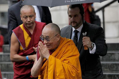 Poco antes de recibir el premio, el Dalai Lama, que vive en el exilio en la India, habló en la catedral de San Pablo sobre las dificultades económicas por las que atraviesa la población del Reino Unido y pidió a la gente que no abandone las esperanzas.