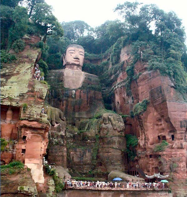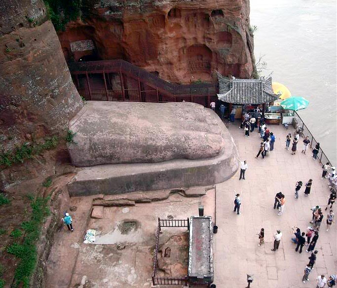Esta colosal representación de Maitreya (Mile Foi), el Buda mesiánico de la era futura, está tallada en piedra y tiene 71 metros de altura, por lo que es el Buda de piedra más alto y la estatua premoderna de mayor altura del mundo. Fue cincelada entre los años 713 y 803 (dinastía Tang 618–907d.C.) en un precipicio del monte Lingyun cercano a la ciudad de Leshan, donde confluyen los ríos Mín Ji?ng (Minjiang), Dadu y Qingyi, al sur de la provincia de Sichuan.