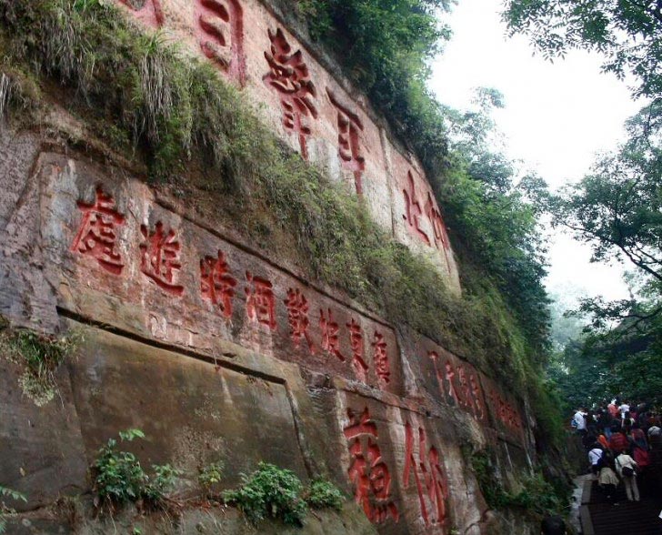 Esculturas y grabados que hay en las paredes laterales del Gran Buda de Leshan.