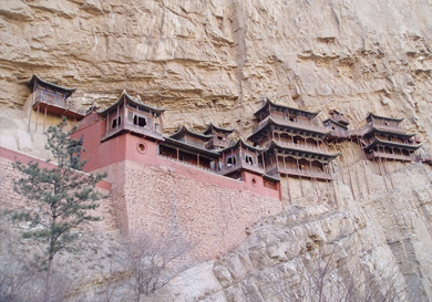 Construido en un precipicio de 75 metros sobre la tierra, el monasterio colgante es una de las atracciones más impresionantes de China. Consiste en un complejo de 40 habitaciones, unidas por corredores a mitad del aire, que parecen estar pegados a la piedra de la montaña. Este monasterio fue construido en el siglo 5° y lleva de pie por unos 1500 años.